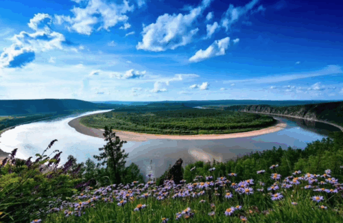 蜿蜒曲折的额木尔河水,如蛟龙过境迂回向前。游玩【白桦林】,